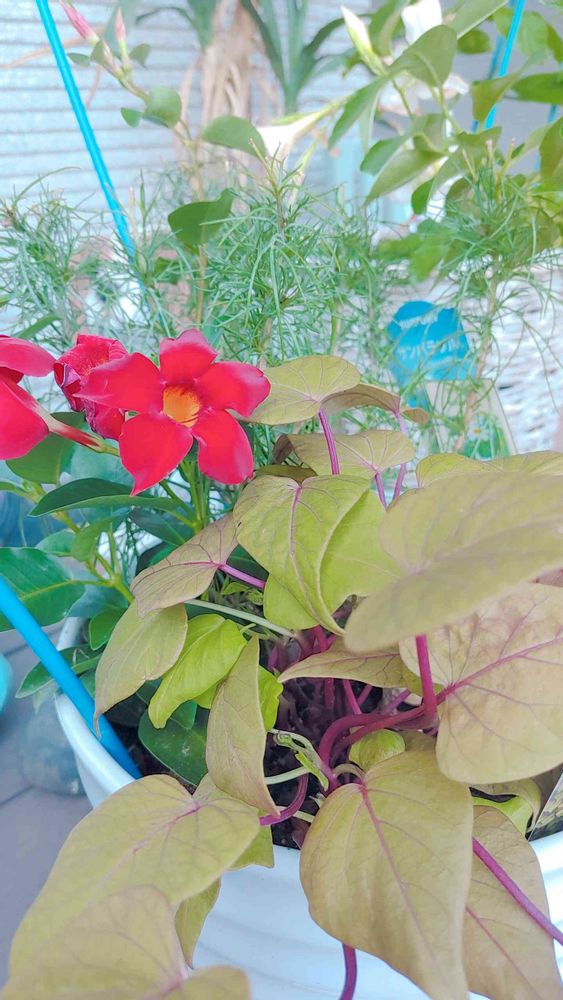 さつまいもの葉っぱのようなウトゥールとサンパラソルの寄せ植えを楽しむ