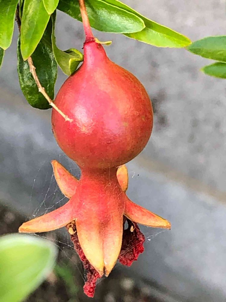 お早うございます〜 今日のザクロ、とてもふっくらとして可愛らしいです!今にも、割って甘い汁がこぼれて来るみたいです−これからも大事に!育ってくれます様に!楽しみです!😅😅😶😶