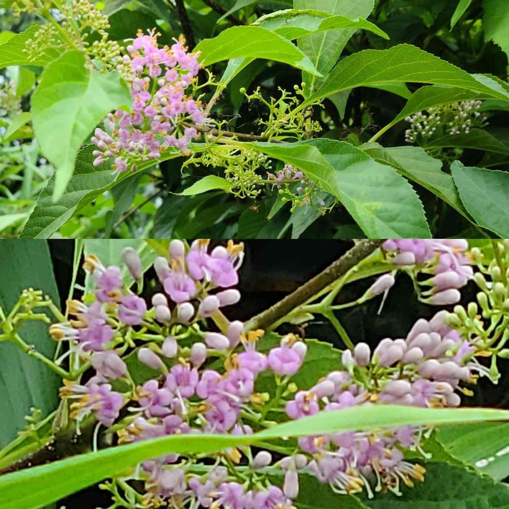 集落に空き家の庭に 竹やらピンク色の花が咲いてる😍 綺麗だけど 3~4m位の高さです😲 見た事の有る花みたいで ムラサキシキブ🤔でも高さがね~⤴️⤴️