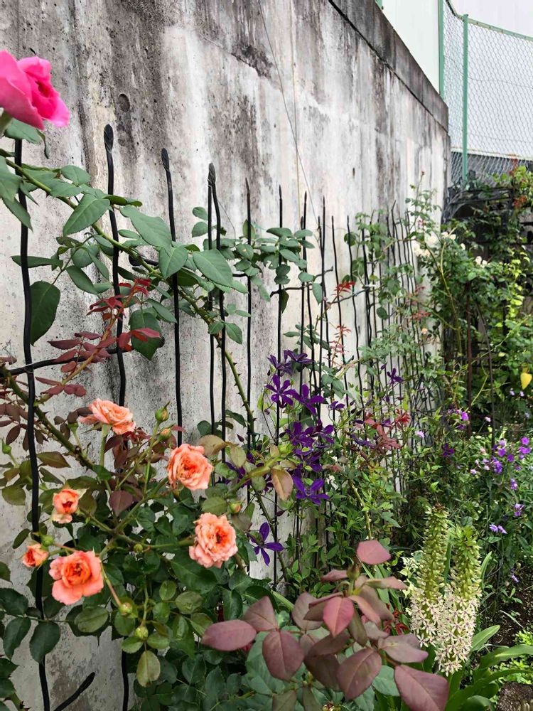 くろまるぷーさんのつるバラ,花いろいろ,バラとクレマチスのラチスの投稿画像