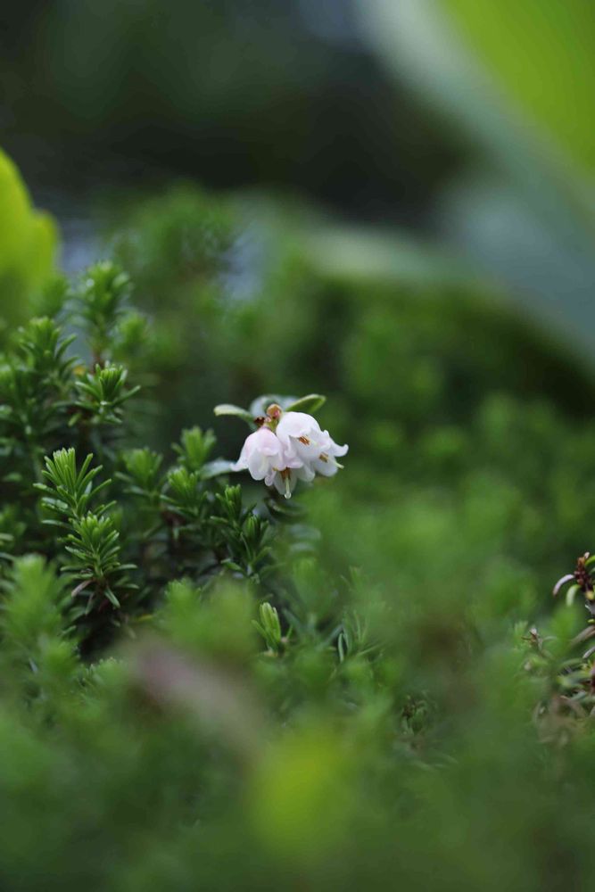 小さい小さいコケモモの花は元気よく