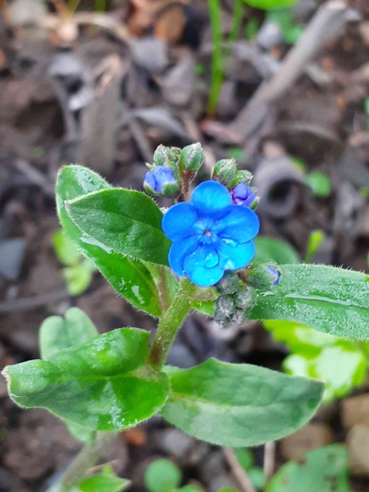 こぼれ種のちっちゃな丈でも、まだまだ咲いています💙🌿😊
