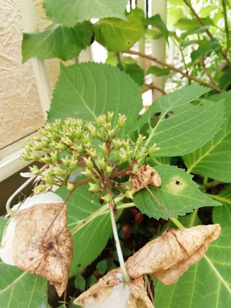 20年も庭にある紫陽花なのに初めて気づいた、花の後の緑の状態。