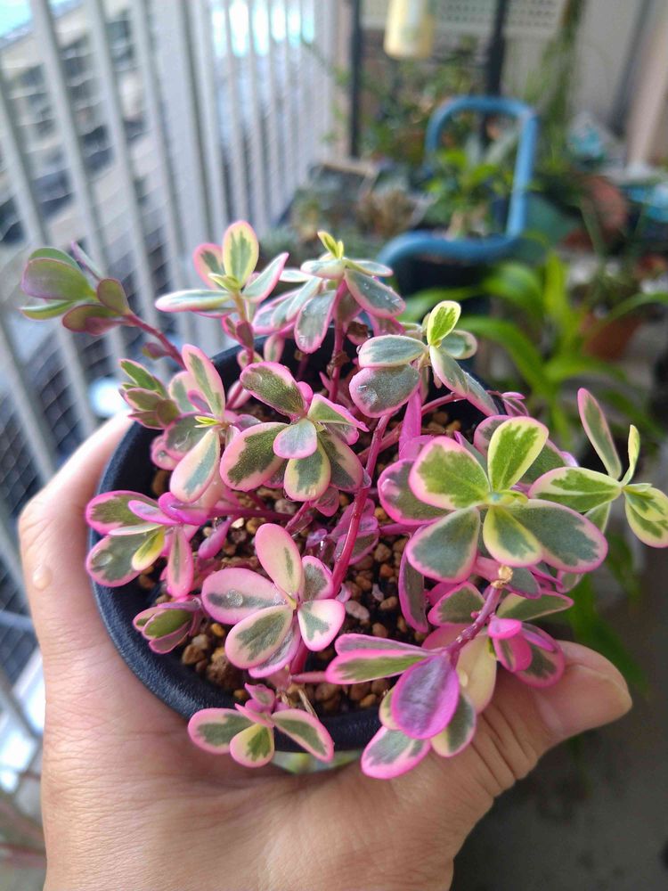 葉がピンクのポーチュラカさん、初めて見ました!!