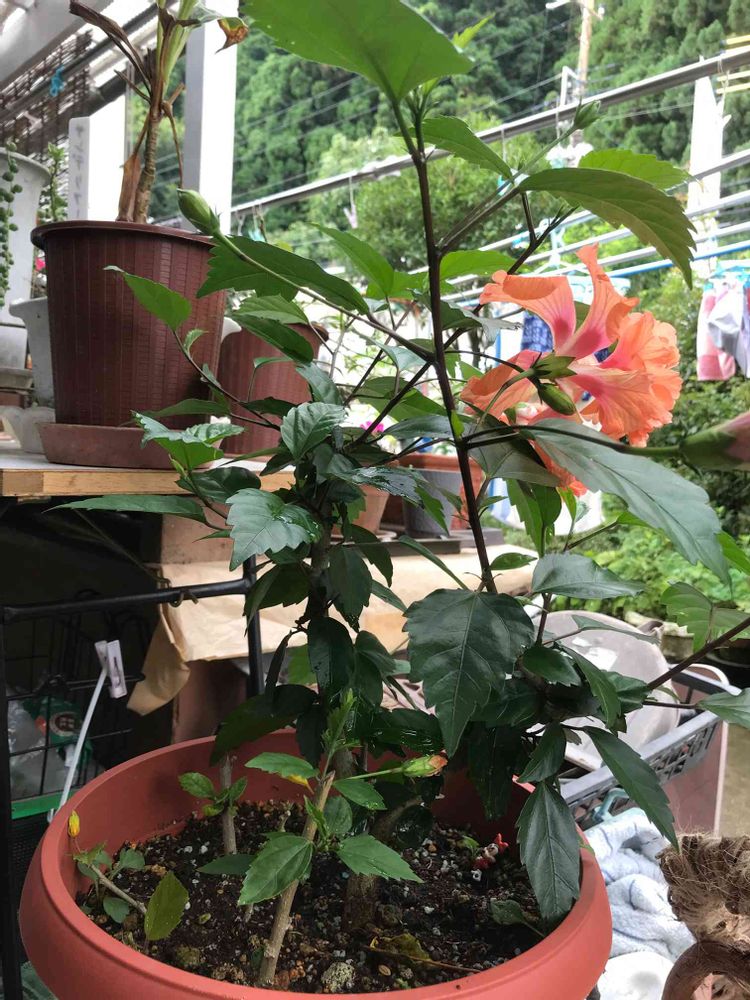 春に切り戻ししたハイビスカス🌺フラミンゴ🦩 沢山の蕾と切り戻して差した枝からも蕾が付きました♪初めての経験だったので嬉しい😆
