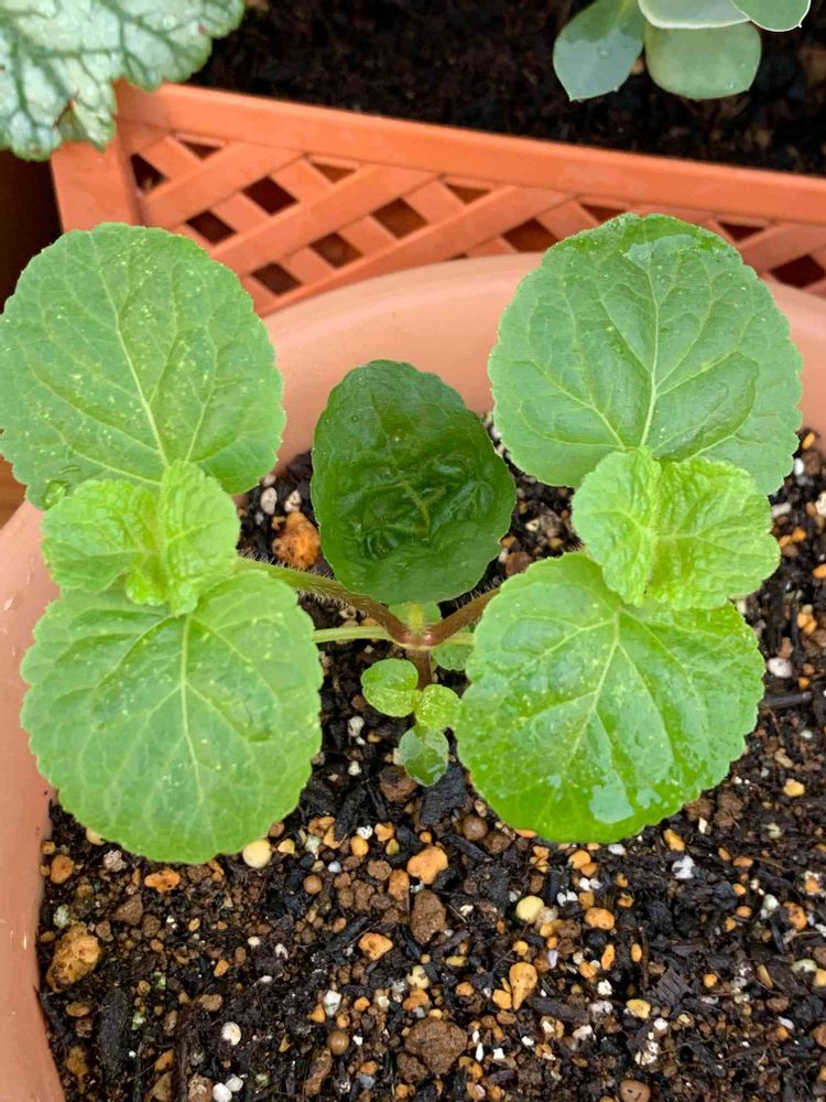 たった一本残った運命の苗です。真ん中に傘のような葉っぱが出ちゃった😆のですが、脇芽がぐんぐん育ってます🤗
