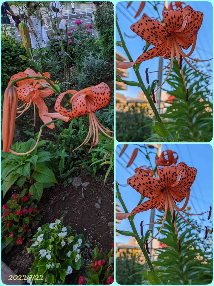 コオニユリ(小鬼百合)、葉の付け根に「むかご」(黒い小球根) があればオニユリ,橙色のお花,ユリ ゆりの投稿画像