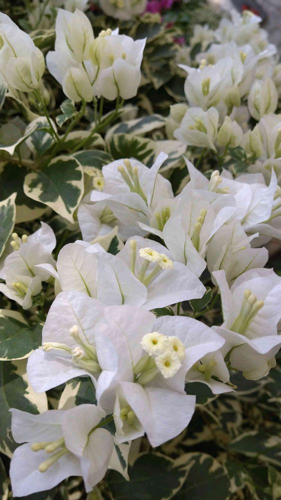ブーゲンさんはピンクとかが良く見るけど、白花は新鮮に映りますね