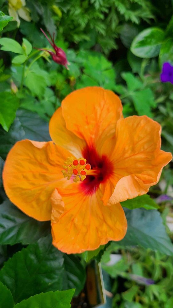 ハイビスカス、サマーブリーズオレンジ色の花が咲きました。