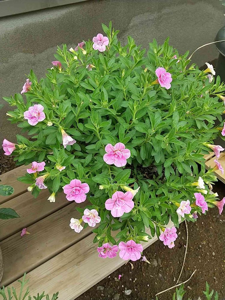 切り戻したカリブラコア。やっともりもりしてきたのに、気づいたら花がごっそり食べられてる❗️