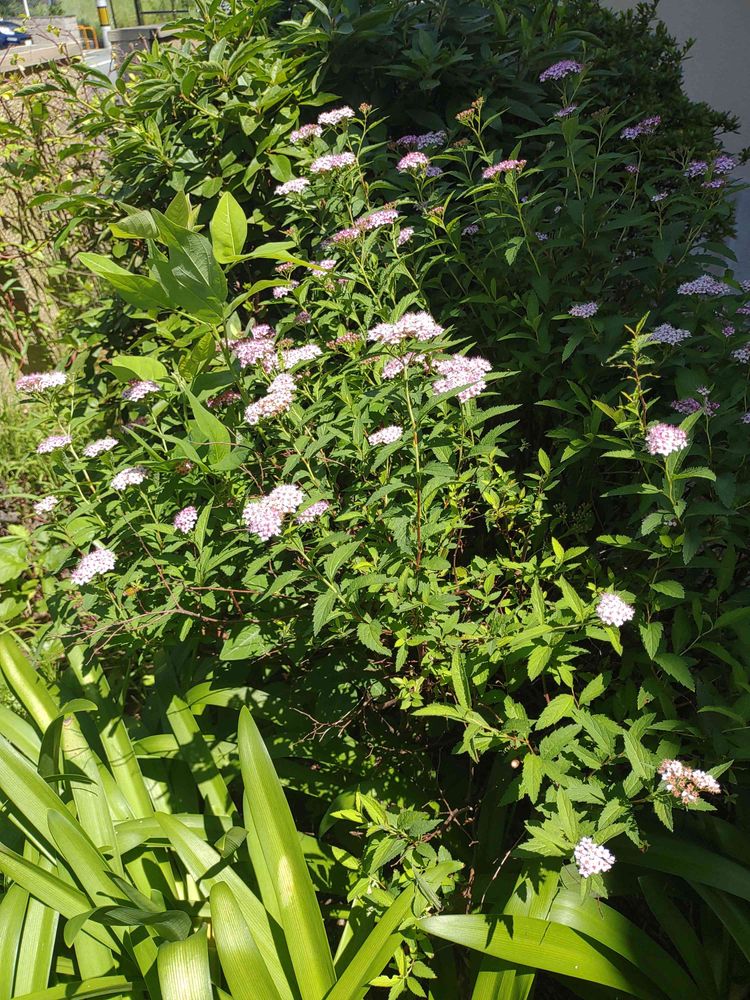しもつけを刈り込んだらしばらくしてまた花が咲き始めました。