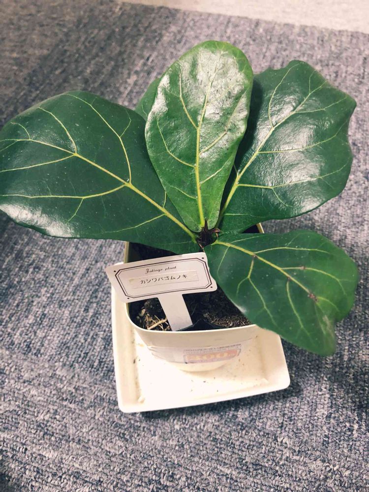 フィカスリラータこと、カシワバゴムです!やっと見つけました。今まで大きく、高額なものしかなくてですね...育つ過程を見たい自分は小さな個体が欲しかったので、見た瞬間即購入です!笑
