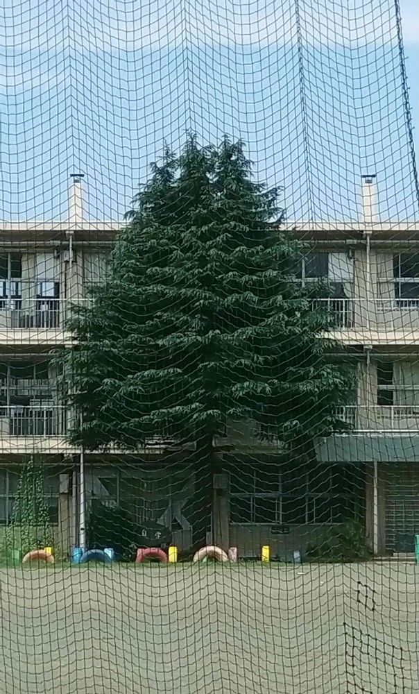 ヒマラヤスギのすぐ近くの教室からは、すぐ目の前にヒマラヤスギが見えるのでしょう。