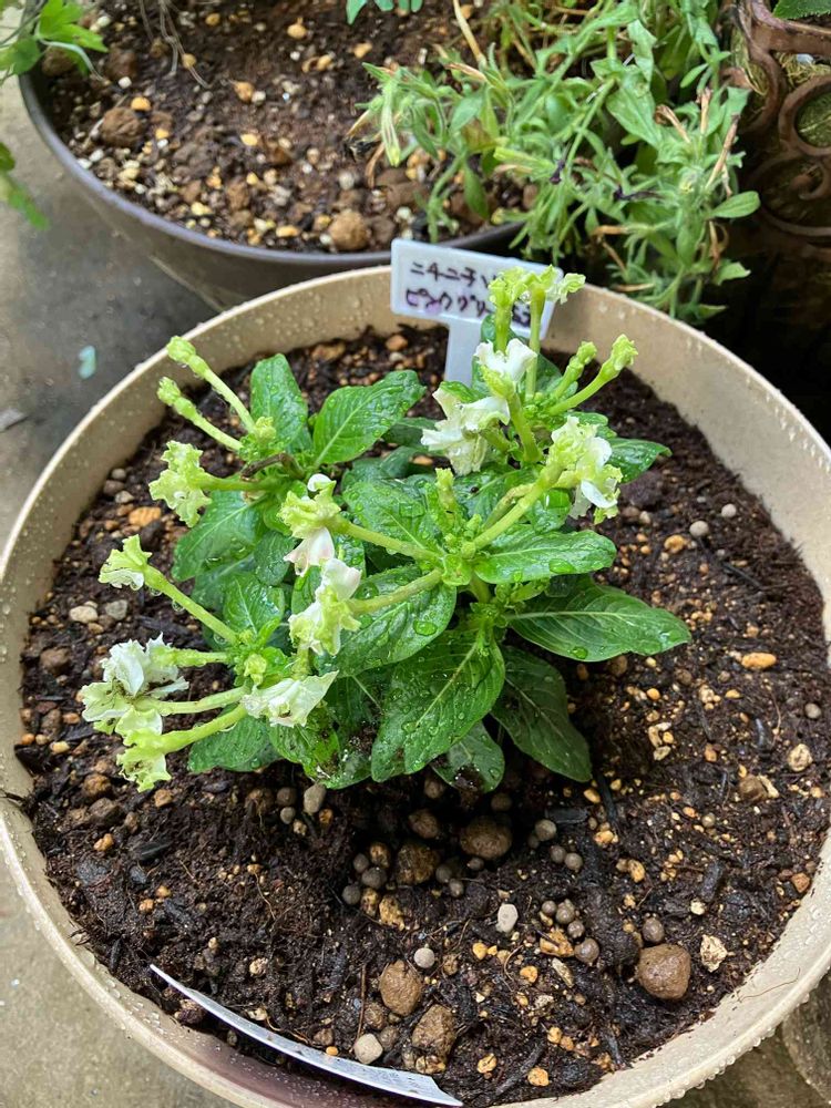 花が八重っぽい。色もピンクとグリーンというなんかペチュニアっぽいニチニチソウ。咲くのが楽しみ