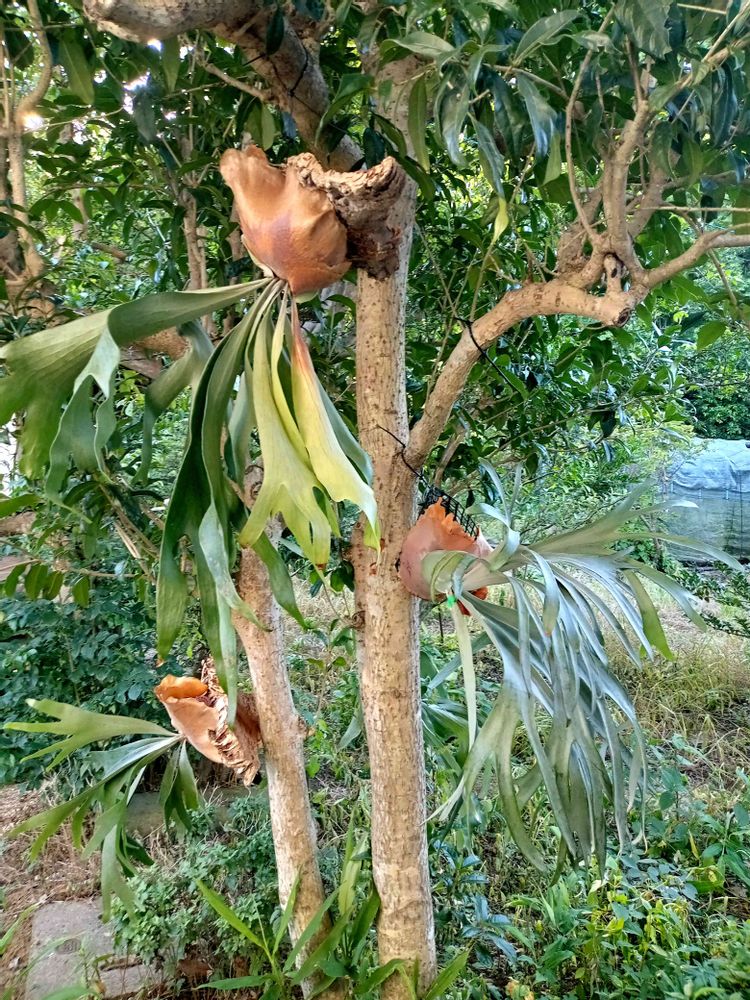 ビカクシダは外の木の枝に下げ、暫らくはここで待っててもらうことに。。マンションのバルコニーよりも田舎のこういう所のほうが居心地よさそう😅