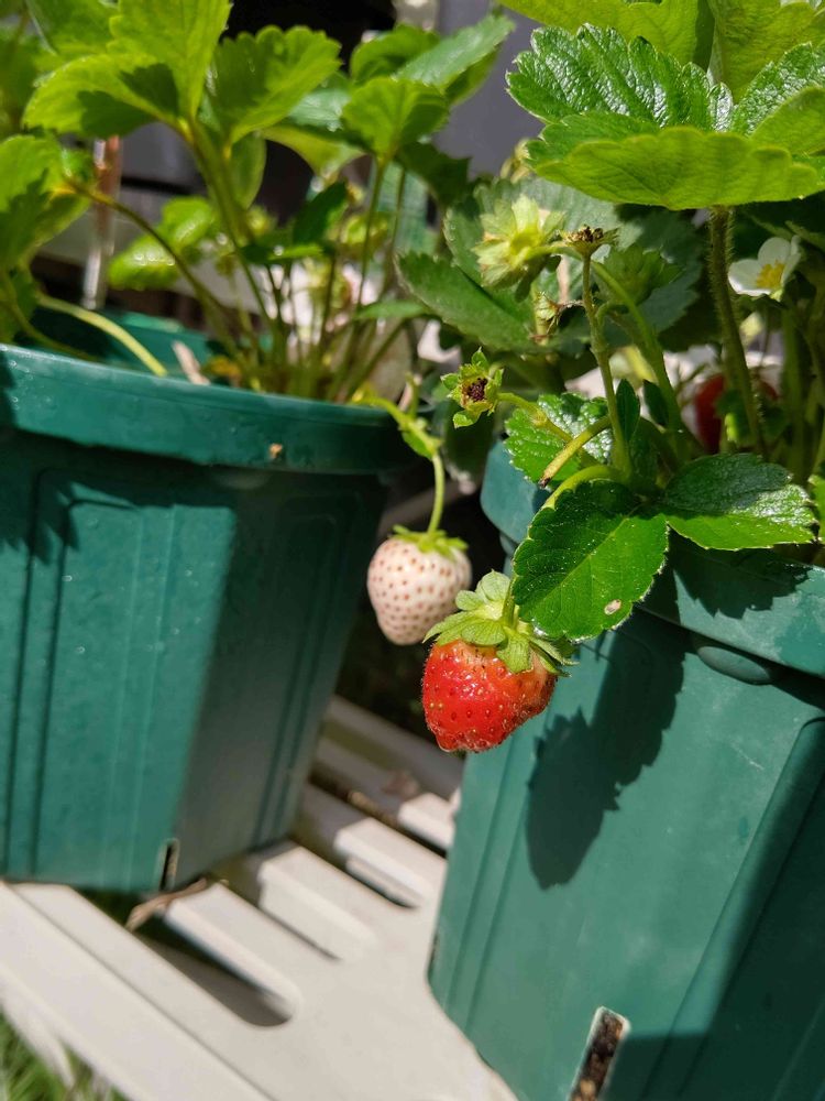 ほとんど四季咲きのイチゴですが、1季咲きのイチゴも少し実を付けてくれています🎵