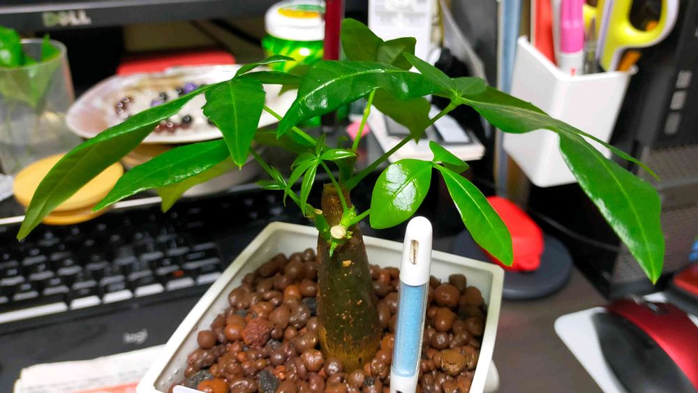 うちのパキラも新芽は黄緑色で柔らかいです✨この子は元気に成長してるように見えますね💕