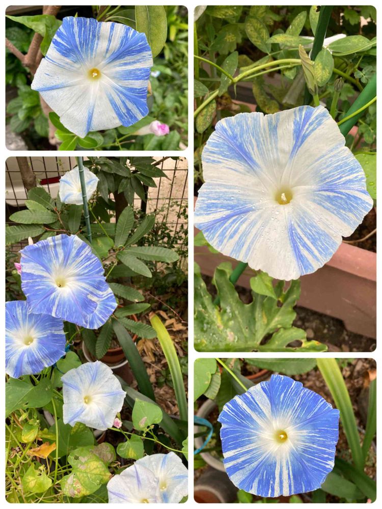 たまちゃんとこには紫陽花も種類多いけど、アサガオも色々なコがいるんだね〜涼しげな斑入り模様の水色で(スゴいネーミングのヘブンリーブルーと言う親の掛け合わせが、、フライングソーサー🤭🤍💙)素敵過ぎる〜🤍💙🤍💙🤍✨✨✨