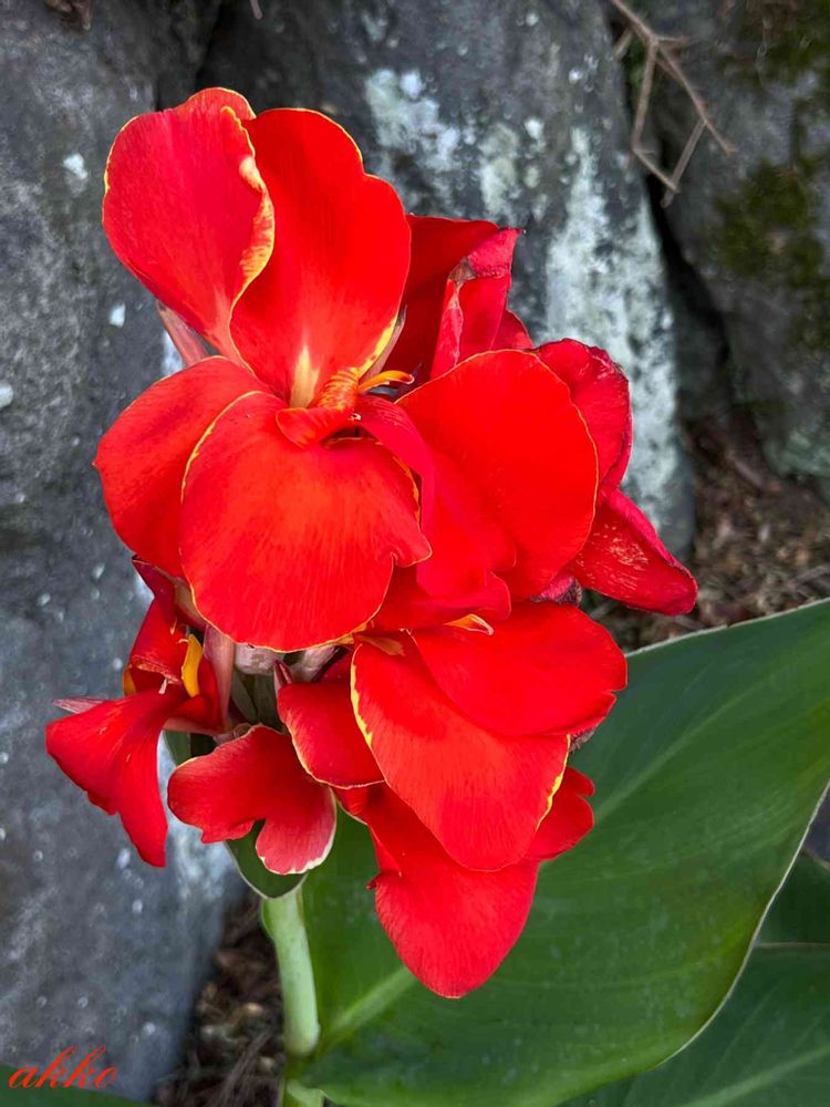 真っ赤なカンナを発見,黄色い縁取りがありますね⁉️