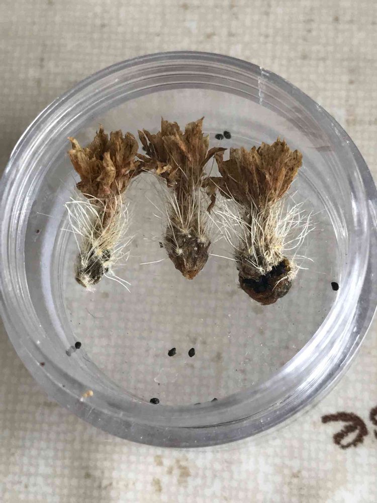 サボテンの枯れた花をそのままにしていたのでとって破いたらタネが入っていました😳