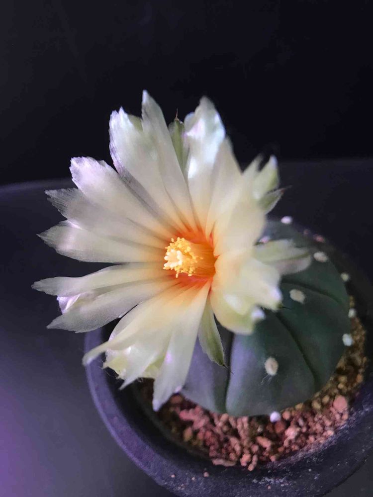 一年中外に出さない子なんだけど、窓際明かりとLEDのエネルギーだけで 咲いてくれた。