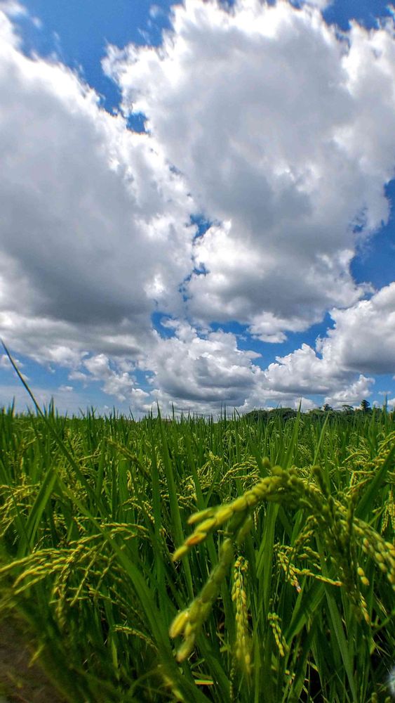 まだ緑の稲の穂が風に吹かれて、サラサラ、サラサラ…暑いんだけど🥵音を聞くと涼しい気がします💚