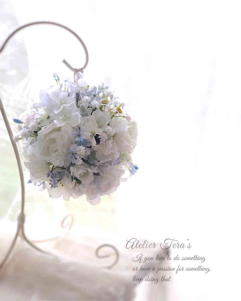 ベーシックコース生徒様作品、ボールブーケです。透明感のある素敵な作品に仕上がりました^ ^