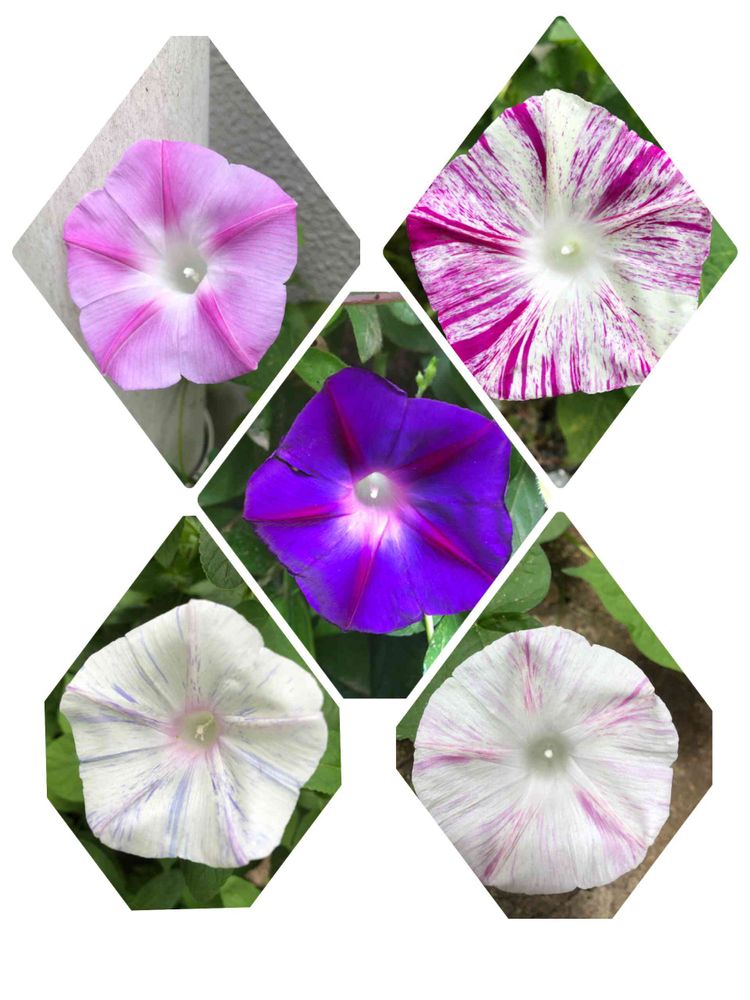 零れ種でこんなに色んな朝顔が咲いてるのね💕