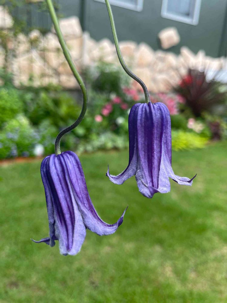 クレマチスのロウグチ。なんとも可愛い花姿✨まだ花数は少ないけど、もう少し株がしっかりするまで鉢で管理して、数年後には地植えにしてたくさん咲かせたい💕