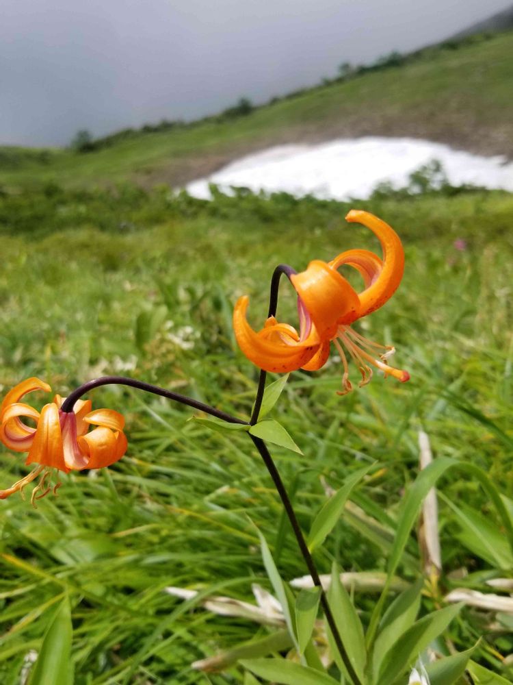 お出かけ先。北アルプス八方尾根。残雪とクルマユリ。
