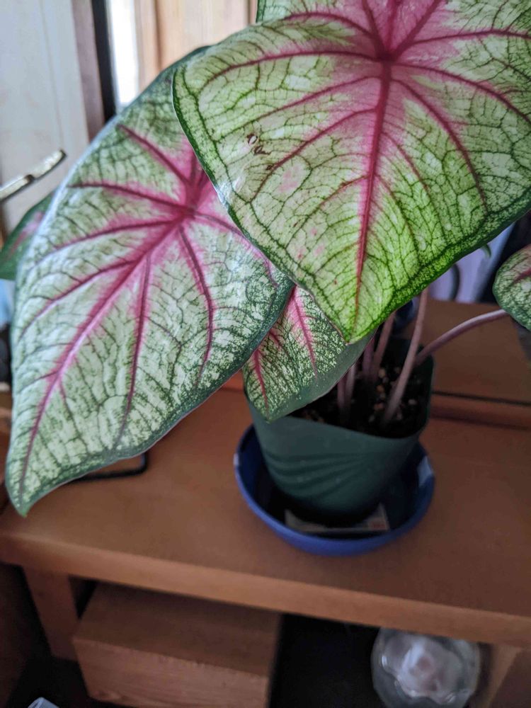 サトイモ科、カラジューム花屋さんから、買って帰りました。昨日、ワンコインちょっとで、こんな上品な観葉植物が買えるとは、得した気分でした。🤔😱🥳