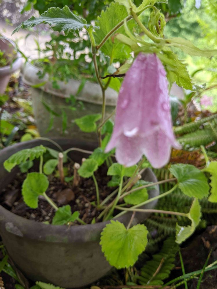 ココは、居心地良いのかなぁ~鉢に植えた、ホタルブクロ。良く花が咲いてくれます。👏🙀