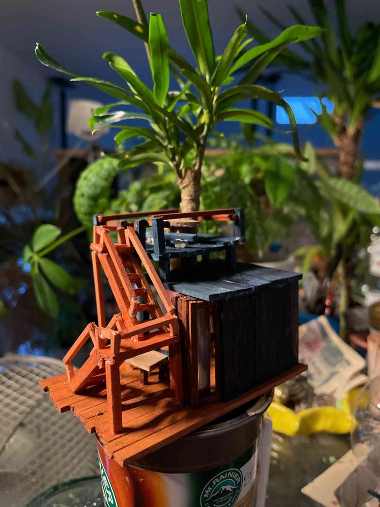 「トムソーヤの冒険」って アニメの影響で、ツリーハウスの虜に。 ハックの家にどんばまり😁 ミニチュアツリーハウス製作してます。 内装凝りすぎて、ややドールハウスに 近いです。