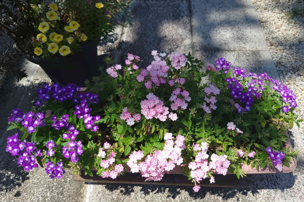 夏に有機肥料はダメらしいけど、構わず施したら咲いてきました🌸二年目のバーベナ