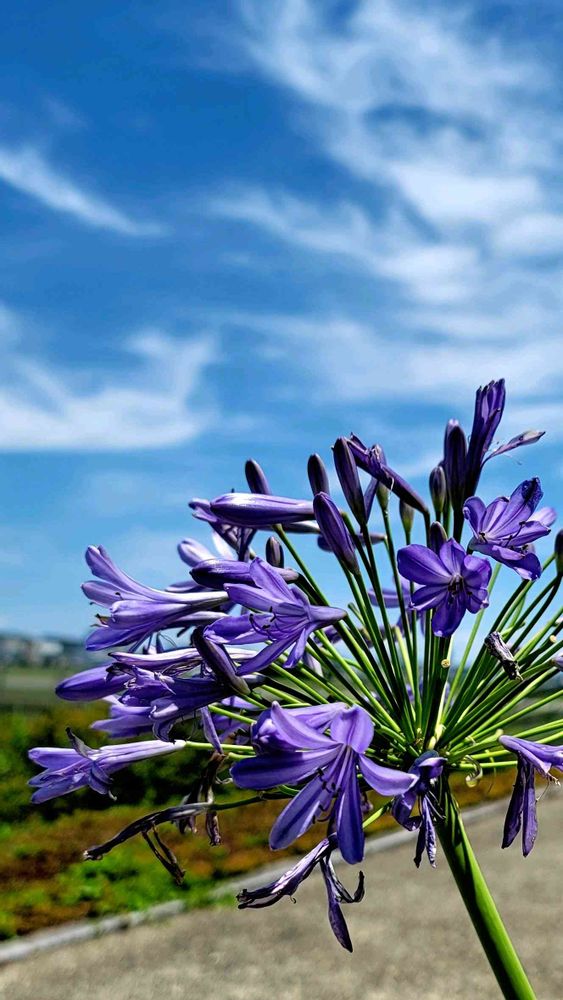 こんばんは✨ 日付が変わってしまいました👀 青空と一緒に撮りたかったので🙆 アガパンサス好きなお花💙です 世の中いろんな事が起こりすぎてタイムスリップしたいくらいですよね