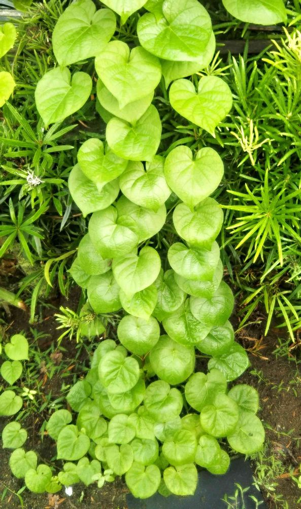 元気な月曜日!らしくハート型の葉っぱが垣根を越えて元気よく伸びていました