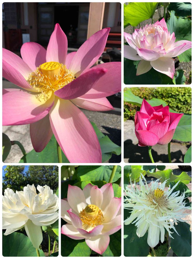 こんなにいろんな種類のハス🪷が咲いてるお寺があるんですね〜😊特に右下のpicはビックリです!どれも美しい〜😍