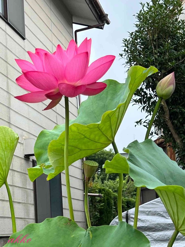 とても背が高いピンクの蓮の花が、咲いていました