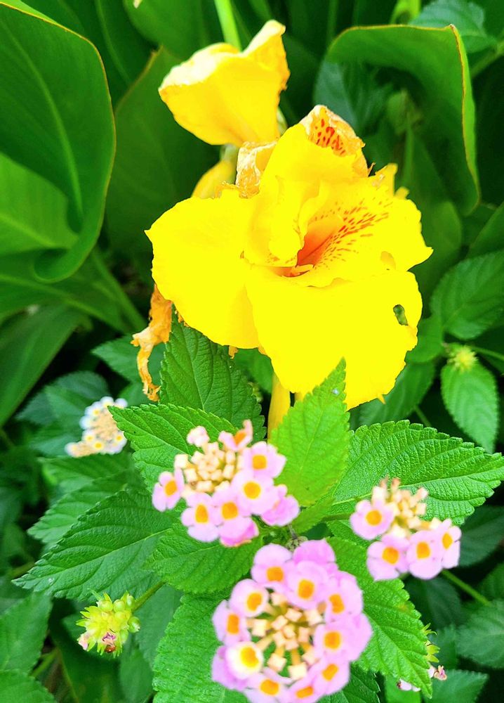 お出かけ先,黄色いカンナ,ランタナ(七変化)の投稿画像