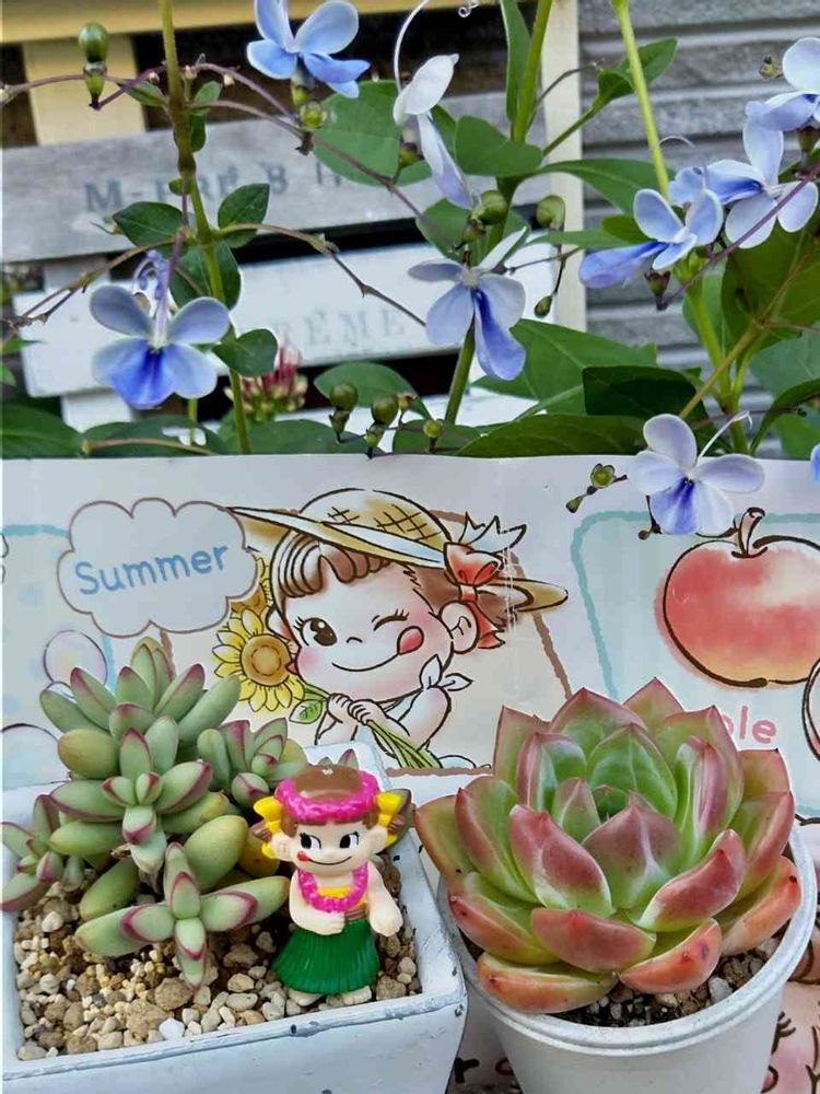 ペコちゃん フラダンスもできちゃうんだ〜❣️ 多肉に囲まれてルンルンダンスだね🎶