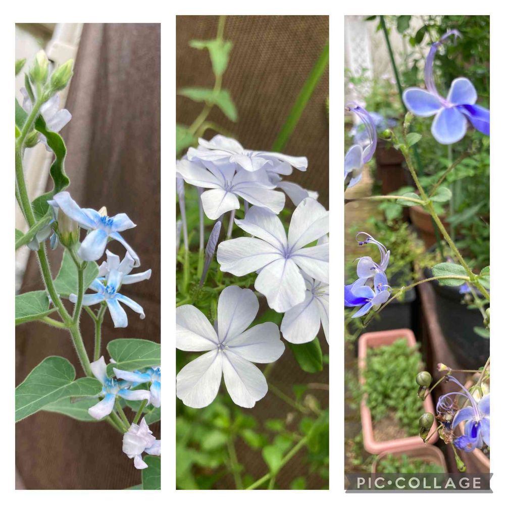 ブルースター(オキシペタラム)、ルリマツリ(正解👌❗️)、ブルーウィング(クレロデンドルム)ですよ😊青いお花好きなんです💙💙💙