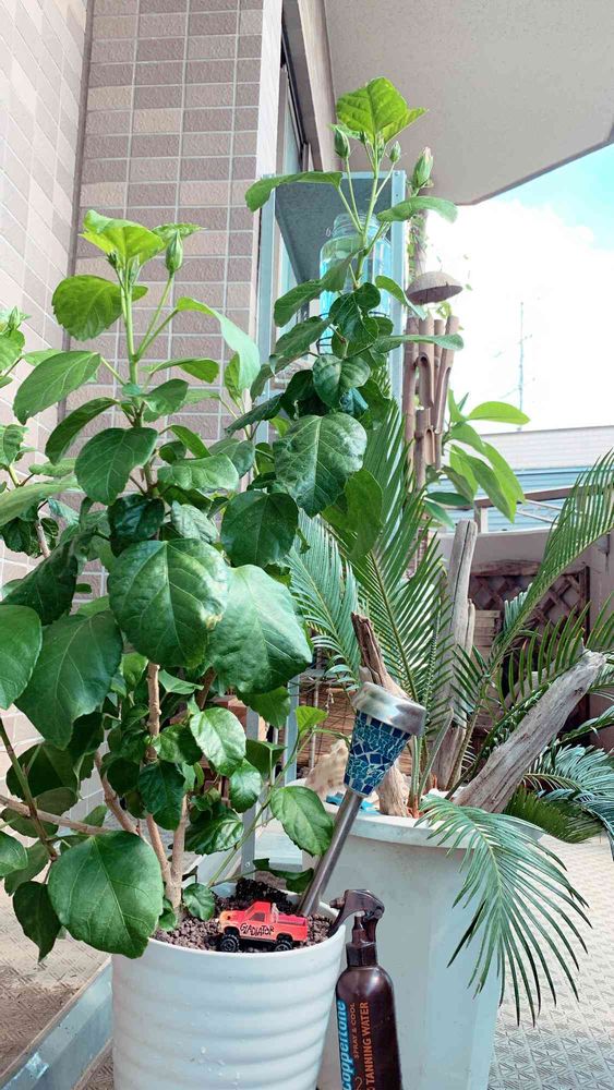 #ハイビスカス#ソテツ#蘇鉄#ミニカー#流木#天サロ👧🏿☀️#見守り当番