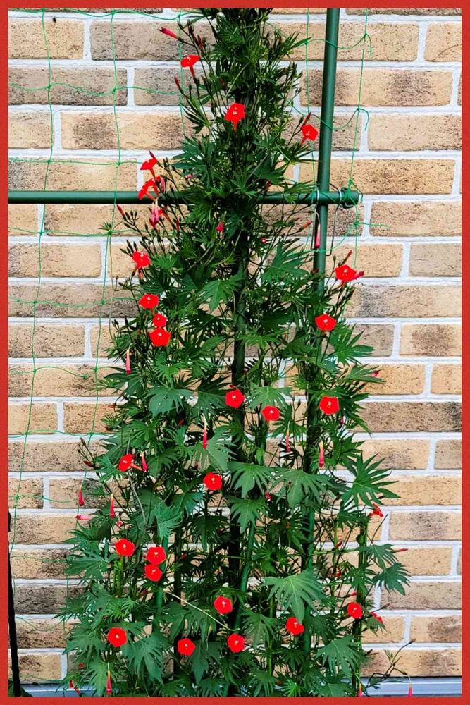 長方形プランターの中心に支柱を立てておいたら、それに絡まりながらツリーになったよ✨🎄✨
