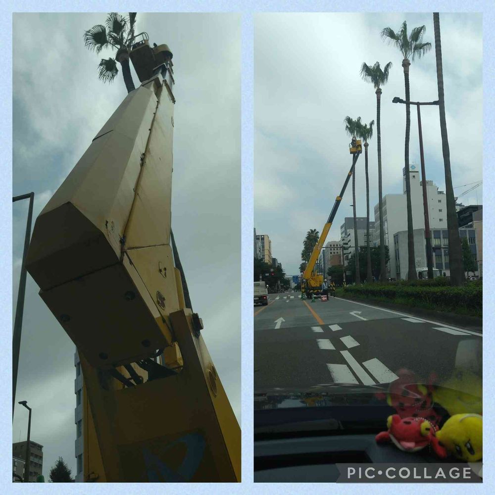 大博通りの椰子の木、枯れ葉の伐採作業、高所恐怖症の私には、絶対無理😱💦💦