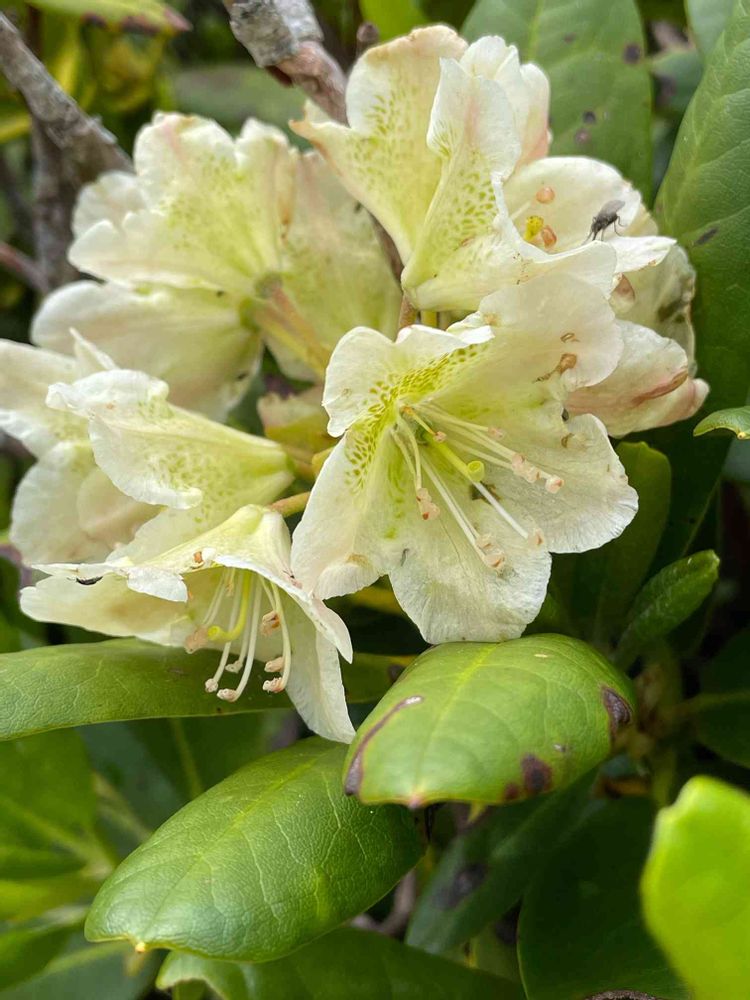 よく見たらハクサンシャクナゲには花に緑の斑点があるとあったのでこちらですね。