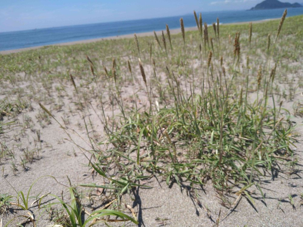 砂浜最前線コウボウムギのやや内陸側に繁茂。砂が熱くてかがむことを怠り地平線が傾きドジ!名前が面白い!恋路ヶ浜
