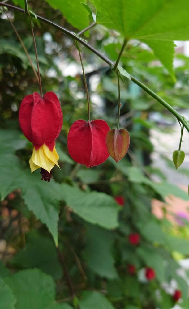 赤いチロリアンランプ(アブチロン)の花が沢山咲いて可愛いです❣️