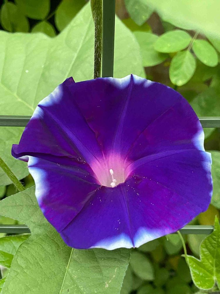 おはよう御座います。朝顔の古典的な青紫色の花びらが朝日に照らされ、眩しく輝いていますね。爽やかな姿に会えて嬉しく思います。今日も良いことが沢山ありますように!