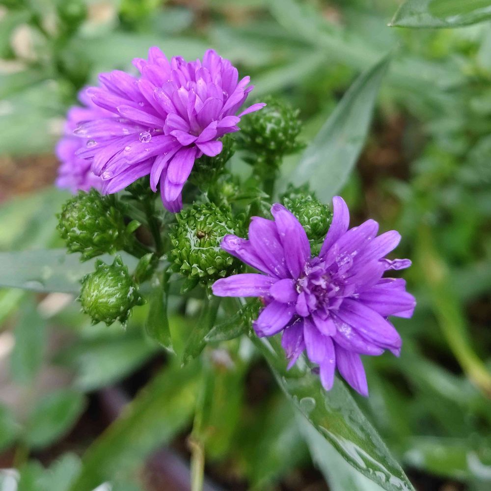 去年、秋に買って、すぐ枯れて…せめて宿根してくれますように🙏と取っておいたアスター✨咲き始めました😍良かった…けど、開花季節、合ってる??