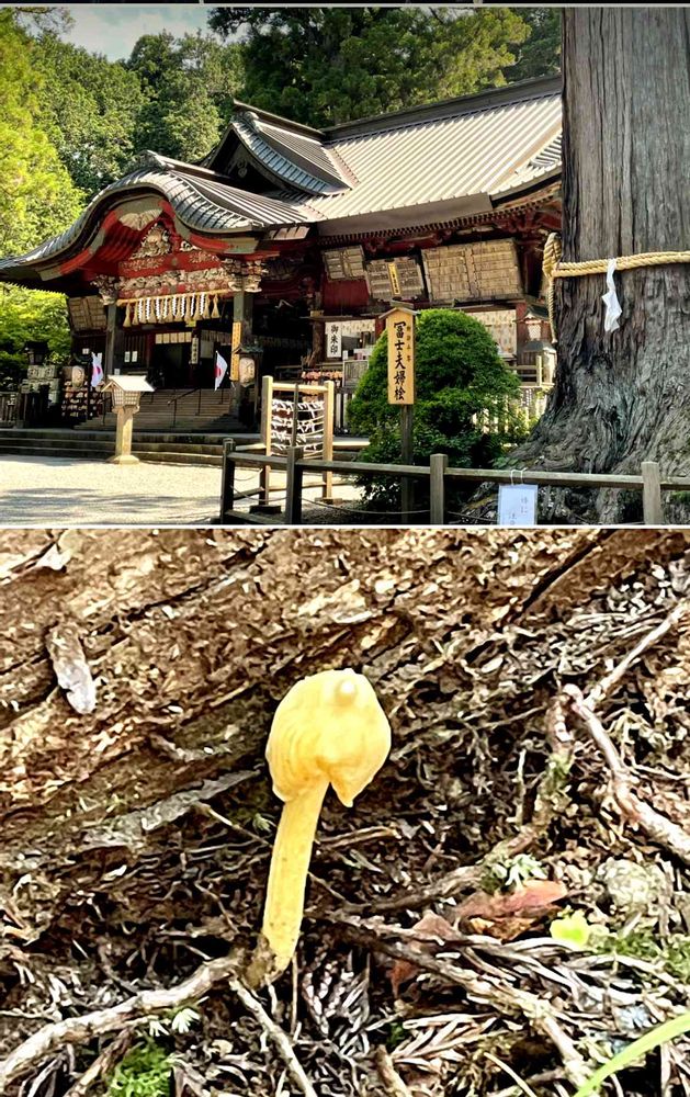 ⬇️杉の木の根もとに可愛いキノコ🍄